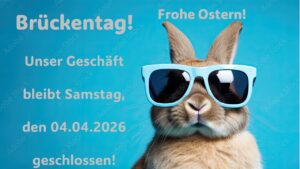 Brückentag! Unser Geschäft bleibt Samstag den 04.04.2026 geschlossen!